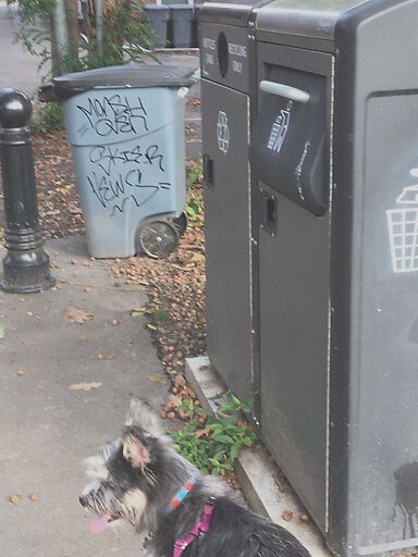 Tagged trash receptacle entrance Waldstein Playground