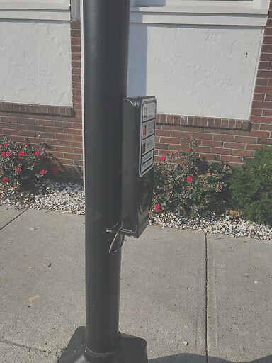 Walk signal button and wires are loose. Seems as if it might fall off of pole when touched.