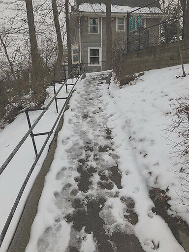 Totally untreated entrance to Schick Park. This is a recurring issue. All of Aspinwall Hill went largely untreated, making driving and walking in the neighborhood extremely dangerous.